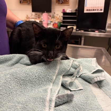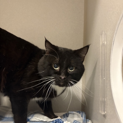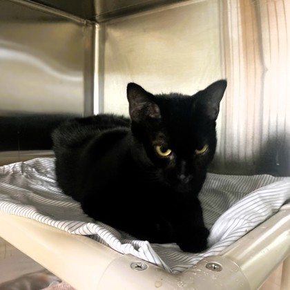 Hello, I'm Noir - a gentle 5-year-old black cat with a soft heart and an even softer purr. I may not be a kitten anymore, but that just means I've perfected the art of being a calm, comforting companion. I'm a quiet soul who loves peaceful spaces, warm naps, and the simple joy of being near someone kind. I'm the type of cat who will greet you with slow blinks, rub against your legs for attention, and curl up nearby to keep you company. I don't ask for much - just a safe, loving home and a person who appreciates a sweet, steady friend. My sleek black fur makes me look elegant, but really, I'm just a gentle girl who wants to feel safe and loved. If you enjoy calm evenings, soft purrs, and having a loyal little shadow by your side, I think we'd be a wonderful match.Come meet me from 12 PM to 6 PM, open every day.No application or appointment required - walk-ins welcome.SPCA of Texas, 2400 Lone Star Drive, Dallas, TX 75212