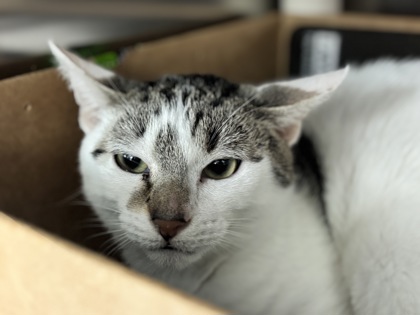 Hi there, I'm Charlie!I'm a 3-year-old mellow gentleman looking for my forever home. I prefer the simple joys in life: a sunny windowsill, a cozy nap spot, and a human who likes quiet company. I don't ask for much-just some gentle pets, maybe a treat or two, and a soft place to snooze. Oh, and chin scratches. Definitely those. Whether you're reading, working from home, or just enjoying a peaceful evening, I'll be right there, making everything feel just a little bit cozier. Life is better with a white cat best friend!Come meet me from 12 PM to 6 PM, open every day.No application or appointment required - walk-ins welcome.SPCA of Texas, 2400 Lone Star Drive, Dallas, TX 75212