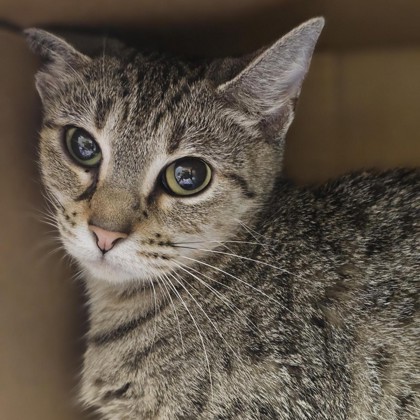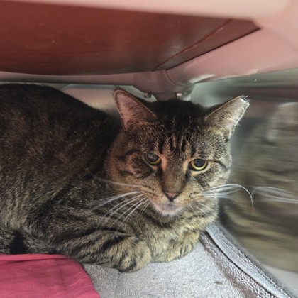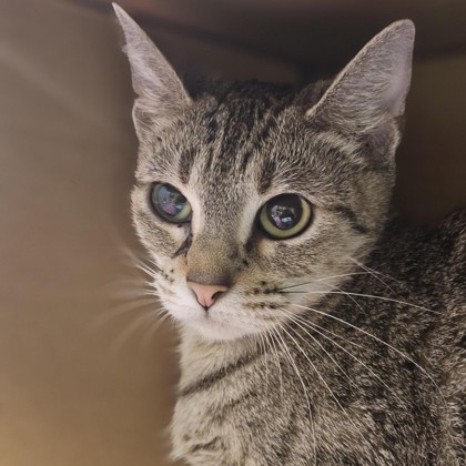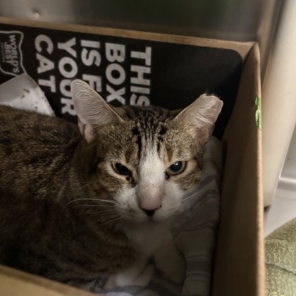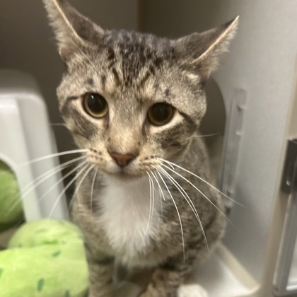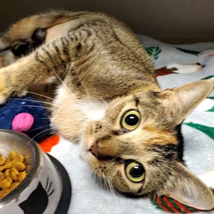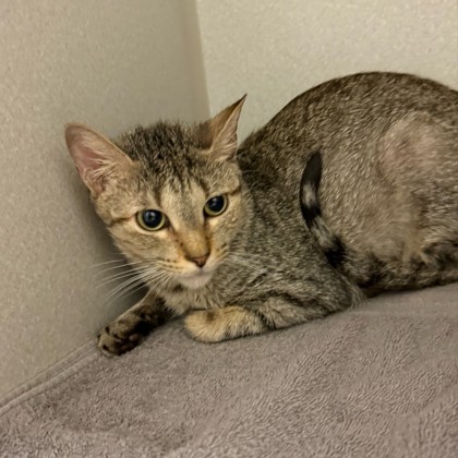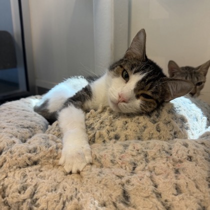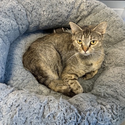 Hi! I'm LYNX, a sweet 3-year old, Female Brown Domestic Short Hair Tabby. My sister/house mate, Bell #59195799, and I are looking for a home together where we can be loved by our human, take long lazy naps, and enjoy watching the birds and nature outside. We are pair bonded, so we need to go home together!We will be at the City Place PetSmart beginning Thursday 8/28/25.* Appointment is Required *