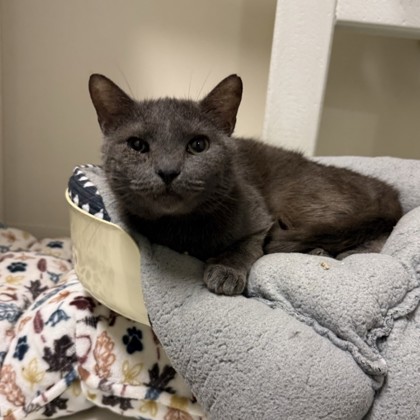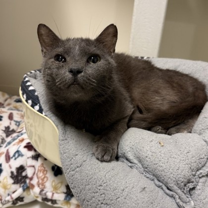 Hi there! My name is BlueI'm a 4-year-old gentleman with a soft gray coat, a mellow personality, and a heart that's ready to bond with my forever human.I like to think of myself as the perfect mix of playful and peaceful. I'll happily chase a feather toy when the mood strikes, but I'm just as content curling up in a sunny spot or keeping you company on the couch. I'm not overly demanding, but I do enjoy a good chin scratch and will reward you with my very best purrs.Come meet me from 12 PM to 6 PM, open every day.No application or appointment required - walk-ins welcome.SPCA of Texas, 2400 Lone Star Drive, Dallas, TX 75212