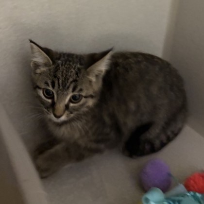 Hi, I'm Toto! I'm a playful little tabby who loves chasing toys and exploring every corner I can find. I've got plenty of energy, but I also enjoy curling up for some snuggles once I'm tired out. I can't wait to find a forever home where I can grow, play, and love!FOSTER REASON: I'm waiting on my neuter surgery before I can officially be adopted, and I'm in a short quarantine until 10/2 out of an abundance of caution. Don't worry though, Im doing great so should be smooth sailing! In the meantime, I'm available as a Foster-To-Adopt, which means we can get to know each other now before making things official.Come meet me from 12 PM to 6 PM, open every day. No application or appointment required - walk-ins welcome. SPCA of Texas, 2400 Lone Star Drive, Dallas, TX 75212