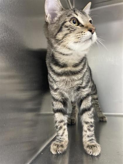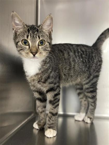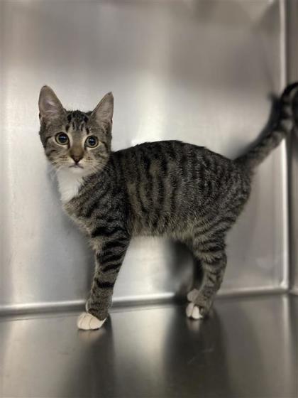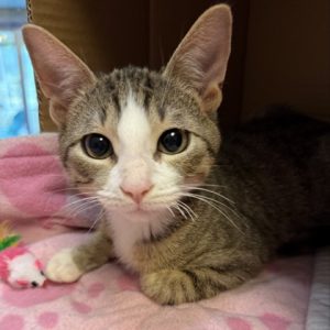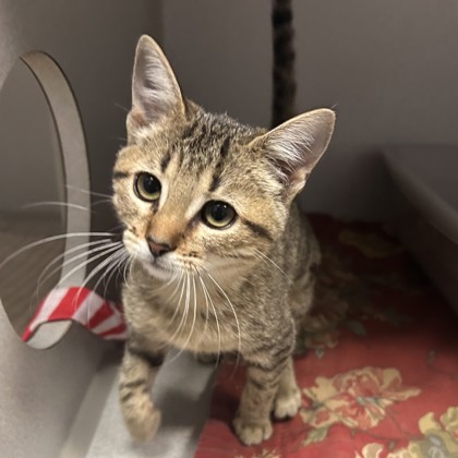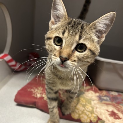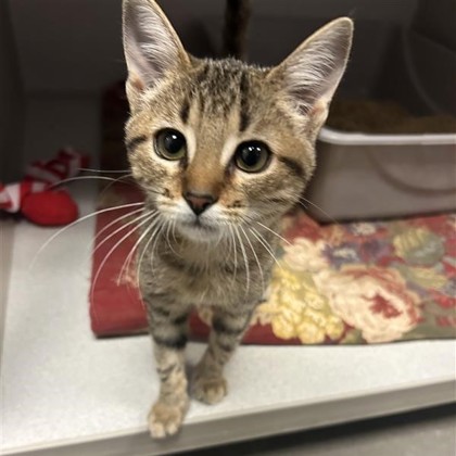 Hi, I'm Noel a 3-month-old Female Brown and White, Domestic Shorthair Tabby. I have a curious nature and a playful personality. I love exploring new spaces, chasing toys, and observing everything around me with bright, eager eyes. I'm friendly, energetic, and ready to find a forever family who'll enjoy my cheerful charm.I will be at the Denton PetSmart beginning Monday 12/01/25.* Appointment is needed *