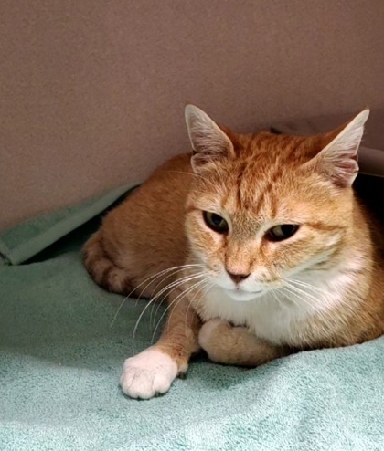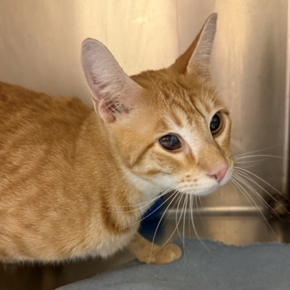 Hi, I'm Tuna - a super handsome orange boy with bright green eyes and the cutest freckled nose around! I'm incredibly sweet, gentle, and affectionate. I'll nuzzle into your hand for pets, lean in for more love, and happily curl up beside you for long, cozy lounging sessions. If you're looking for a loving companion who adores attention and wants to be your everyday snuggle buddy, I'm your guy!If you are looking for the sweetest new addition to your family, I might be the one! I'm currently in a foster home so please email Foster@spca.org to meet me!