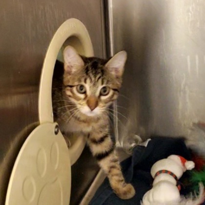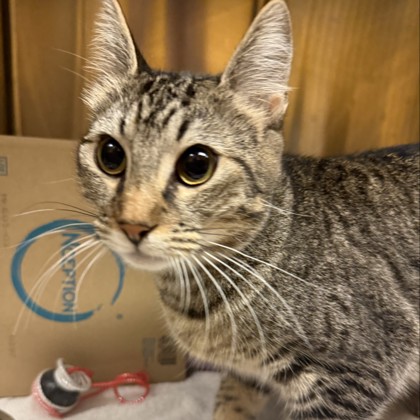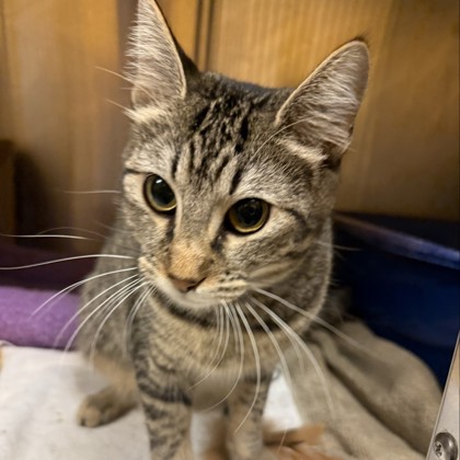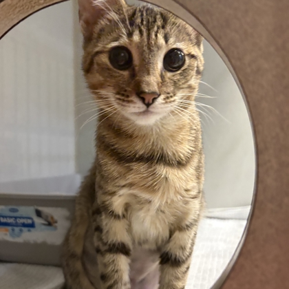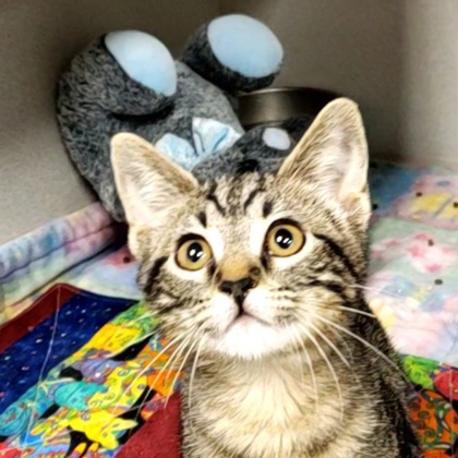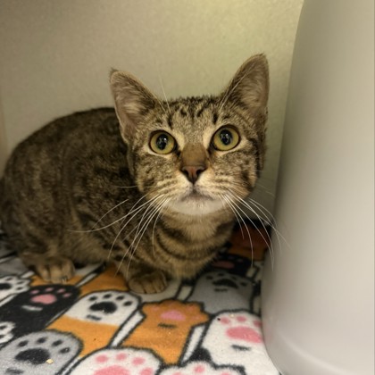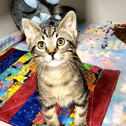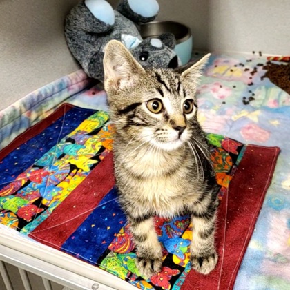 Hi, I'm Twinkle! I'm a curious, playful 3-month-old Female, Brown Domestic Short Hair Tabby kitten, who loves pouncing on toys, exploring anything that crinkles, and snuggling up when I'm sleepy. I may be tiny, but I have a big heart and an even bigger purr. I can't wait to meet someone who'll be my forever friend.I will be at the Lakewood PetSmart beginning Monday 12/08/25.*Appointment is Needed*