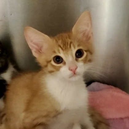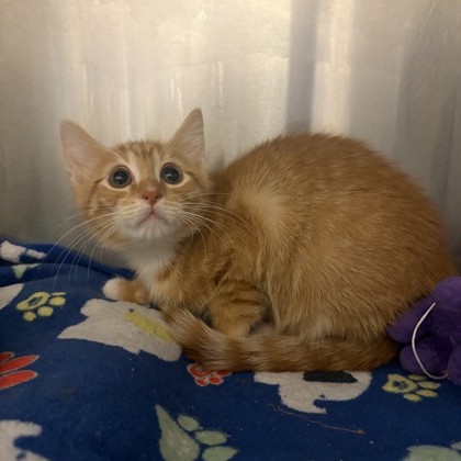 Hi! I'm Lane a cute, watchful fellow. I am a 2-1/2 month old Male Orange and White, Domestic Short Hair Tabby. I am part of a litter that was found by a nice person along with our Mom. We all went to a Foster home for TLC and until we got bigger. Now I am ready to find a Family to join!I will be at the Denton PetSmart beginning Thursday 10/16/25. * Appointment is Required *