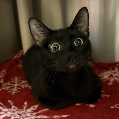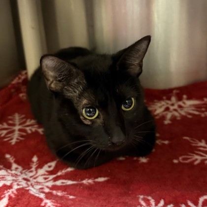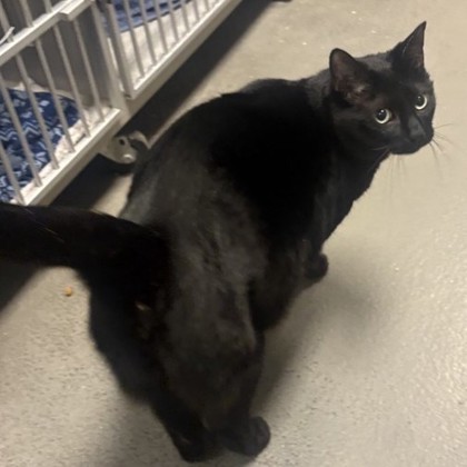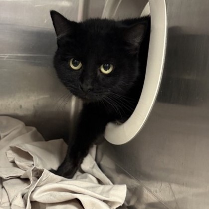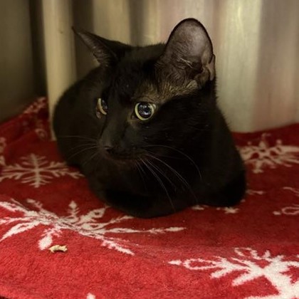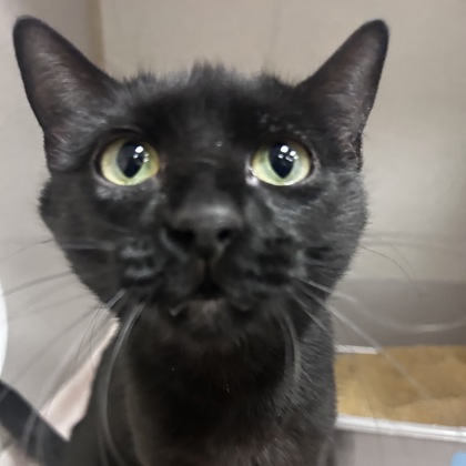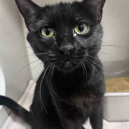 Hi, I'm Zinnia, a cute, 2-year old Female Black Domestic Short Hair kitty with big, bright green eyes that seem to sparkle in the light. I have a sweet, gentle presence and love sharing quiet moments, soft pets, and cozy spots. If you're looking for a little elegance with a whole lot of charm, I'd love to be your Zinnia.I will be waiting for YOU at the Denton PetSmart beginning Wednesday 01/14/26.* Appointment is Needed *