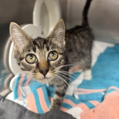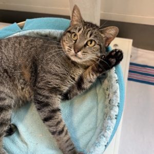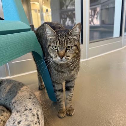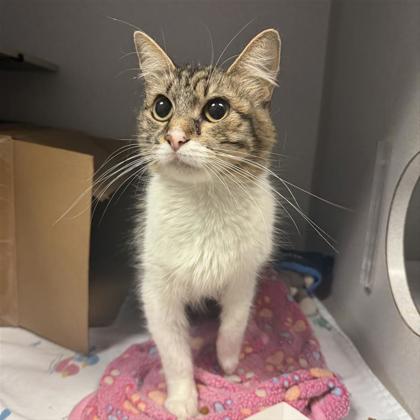 Hello, my name is Duchess. I may be small at 1-1/2 years old, with lovely Brown Tabby hair, and coming from the blood line of Domestic Short Hairs of long ago, but I carry myself like royalty. I enjoy the finer things in life: sunbeams on the floor, soft blankets, and being told how beautiful I am. I'm curious, playful, and I have a tiny purr that turns into a full royal motor when I'm happy. I love chasing toys, supervising humans, and curling up beside you after a long day of ruling the living room.I will be patiently waiting on my carriage ride to my palace from the Lakewood PetSmart beginning Tuesday 03/10/26.* Appointment is Needed *