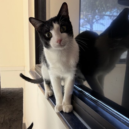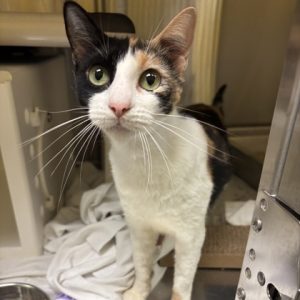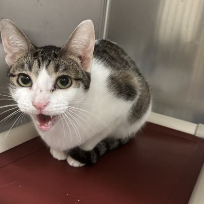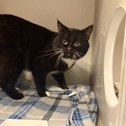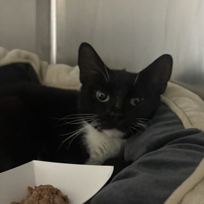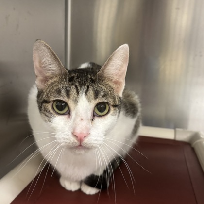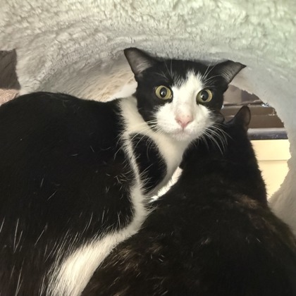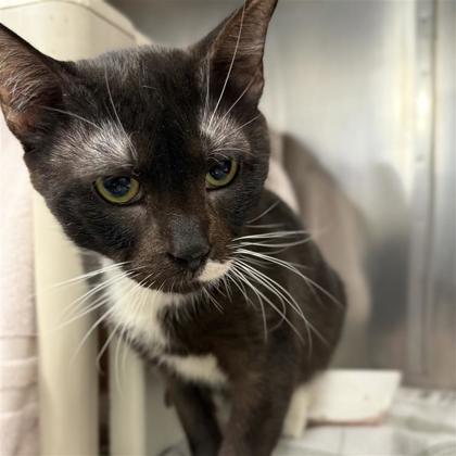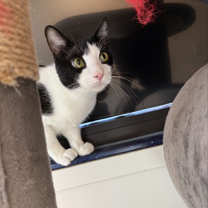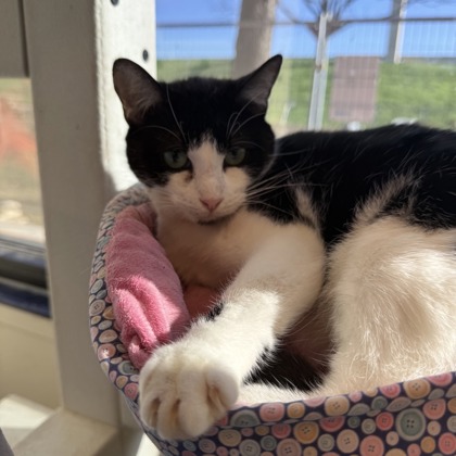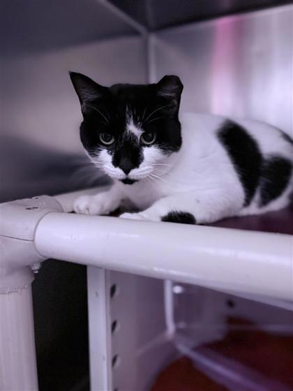 Meet Mosaic - Your Living, Purring Work of Art Say hello to Mosaic, a stunning 2-year-old tuxedo beauty whose tiny black spots look just like pieces of fine mosaic art-hence the name! She's not just a pretty face, though-this girl has personality. Whether she's lounging regally in her donut bed or keeping you up to date with all the kitty gossip, Mosaic is a sweetheart through and through. Mosaic is living with Calicivirus, a common and manageable upper respiratory condition. It's lifelong, but don't let that scare you-it just means she'll need to be the only cat in the home, or join a household with other cats who already have a history of Calicivirus. She's doing just fine and brings nothing but love, snuggles, and sass to the table. If you're looking for a little feline flair and a whole lot of love, Mosaic is your girl. She's ready to bring charm, cuddles, and a bit of cat drama (she's a talker!) into your life.Come meet her at 2400 Lonestar Dr. Any day between 12 noon - 6 PMAdopt a masterpiece-bring Mosaic home today!