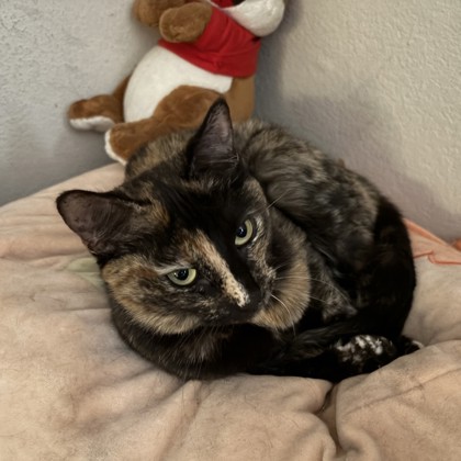 Hi there! I'm Sasha, an 8-year-old lady with a soft heart, a gentle spirit, and a purr that sounds like a tiny motorboat. I may not be a kitten anymore, but I think that just means I've perfected the art of being the best kind of cat - calm, loving, and full of quiet charm.I am in a foster home so click the "Learn More About Me!" tab to fill out an application to meet me!
