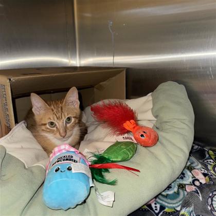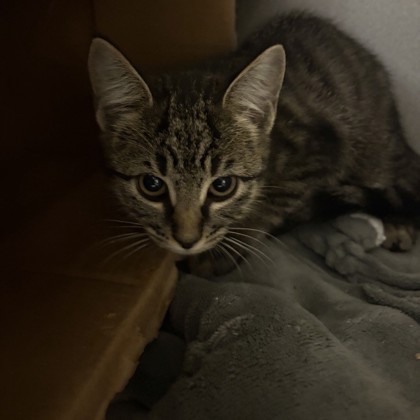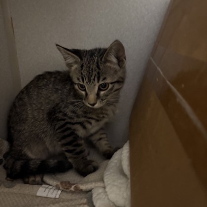 Hi, I'm Aston! I'm a sweet little guy who's a bit timid at first, but once I feel comfortable, I love to come out and play. Hi... I'm still figuring things out. I'm just a tiny 2-month-old kitten, and the world feels really big right now. New people, new sounds, new everything - it can all be a little overwhelming for someone my size. I'm curious, sweet, and I want to feel safe - I just need a patient heart to help me get there. If you're someone who understands that trust takes time - but is worth every second - I think we could be something special. I don't need much... just love, patience, and a safe place to grow into the brave little cat I know I can be.Come meet me from 12 PM to 6 PM, open every day.No application or appointment required - walk-ins welcome.SPCA of Texas, 2400 Lone Star Drive, Dallas, TX 75212