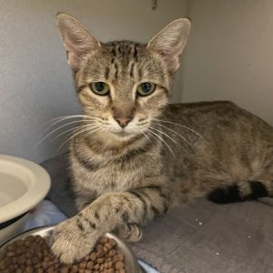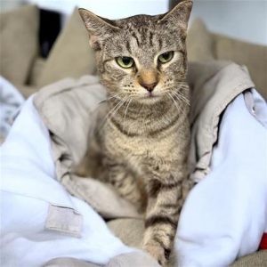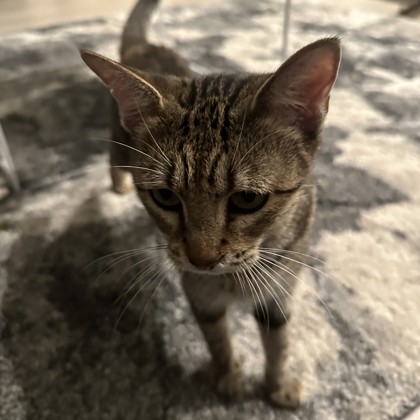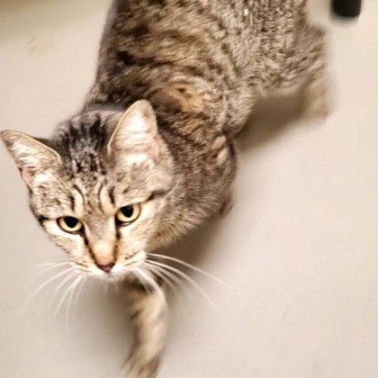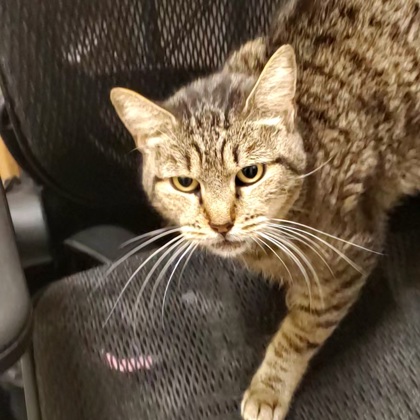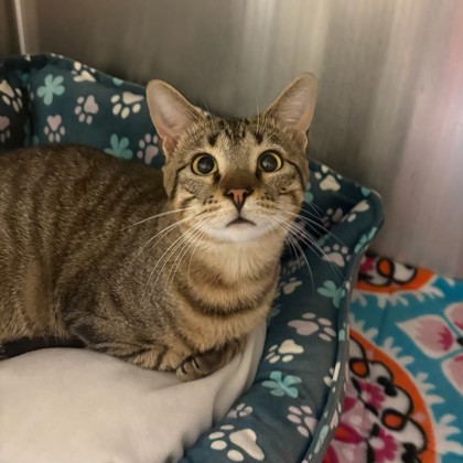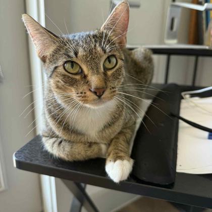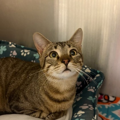 Hi! I'm Satine, a sweet 3-year old Male, Brown Domestic Short Hair Tabby. You might not be able to tell by my picture, but I am a biscuit maker by trade. I am a devoted lovebug in need of a person to knead me! I will be waiting to meet you at the Denton PetSmart beginning Thursday 10/09/25.* Appointment is Required *