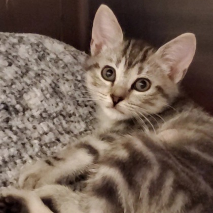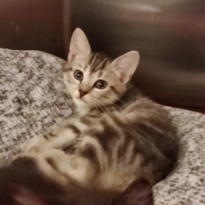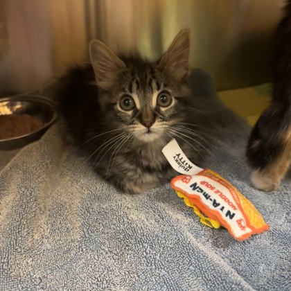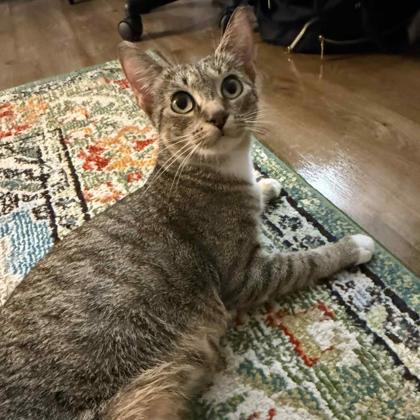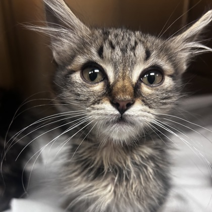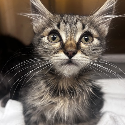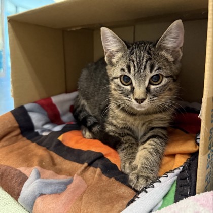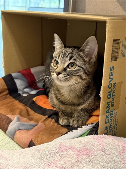 Hi! I'm Fleur a cute, 2-month old Female Brown Domestic Short Hair Classic Swirl Tabby. I once was a stray, got to go to a Foster home for TLC and to grow. Now I am ready to find a purrrrfect place to call home! I am friendly, playful and enjoy snuggles!I will be at the Denton PetSmart beginning Thursday 10/16/25.* Appointment is Required *