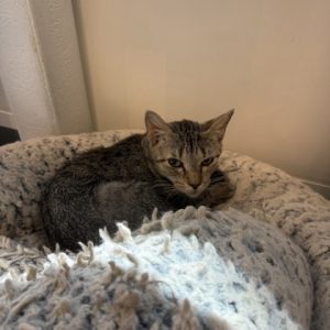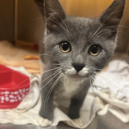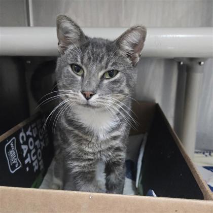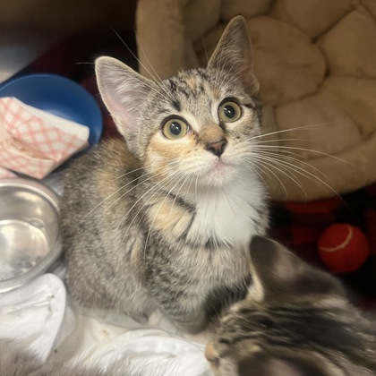 Hi! I'm Tauriel, a sweetheart that is 3-Month-old Grey, Female Domestic Short Hair. I'm friendly, affectionate, and love playtime just as much as cuddle time. I will be at the Greenville PetSmart beginning Friday 10/3/25.* Appointment is Required *