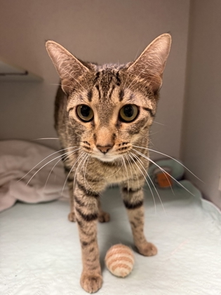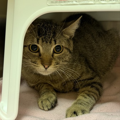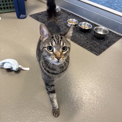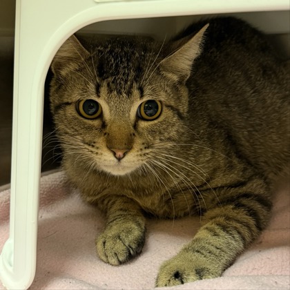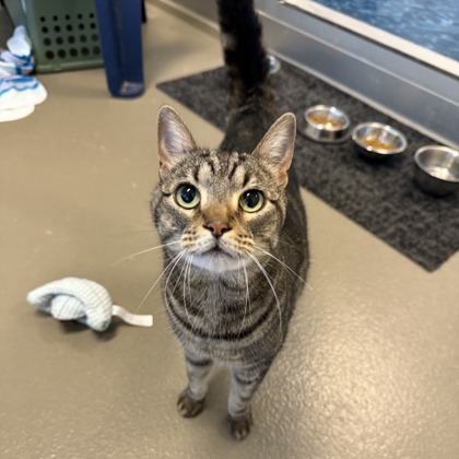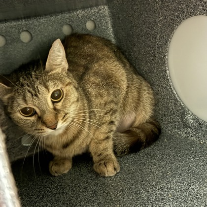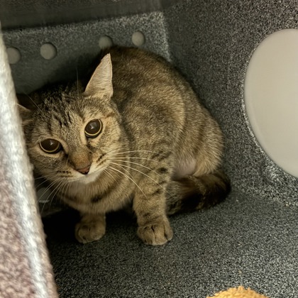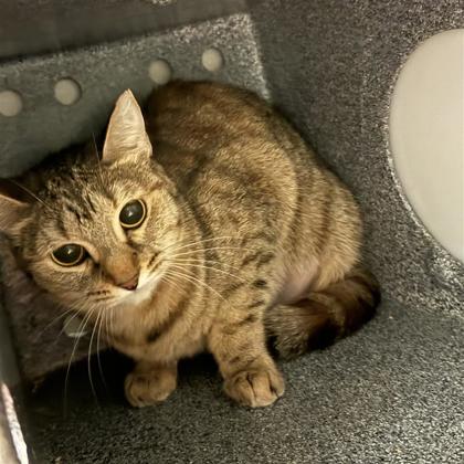 Hi there! I'm Violet a sweet natured 2-year old Female Brown Domestic Short Hair Tabby.I'm a girl who knows exactly what I want-your attention! I love being around people and I'm not shy about coming up to say hello, ask for pets, or just see what you're up to. If you're looking for a cat with personality, I've got plenty of it. Now all I need is a place to call home!Meet me at our Denton PetSmart Adoption Center - 1441 S Loop 288, Denton, TX 76205**By appointment only**Click "Learn More About Me" to schedule your visit.