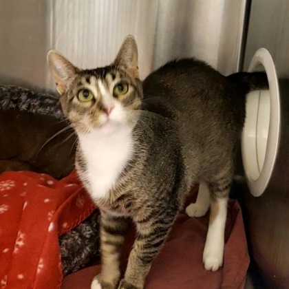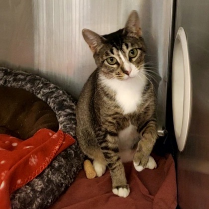 Hi, I'm Winnie a pretty 1-year old Brown with White, Domestic Short hair Tabby. I also am your Future Cuddle Buddy! I'm a sweet, snuggly girl who loves nothing more than curling up next to someone I love. I might just be the one for you. I can't wait to find my forever home! I will be at the City Place PetSmart beginning Friday 10/10/25.* Appointment is Required *