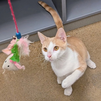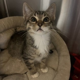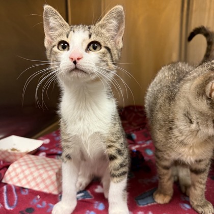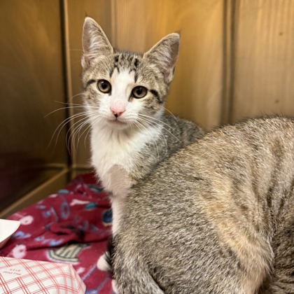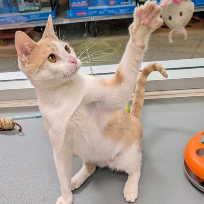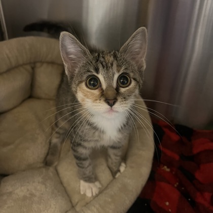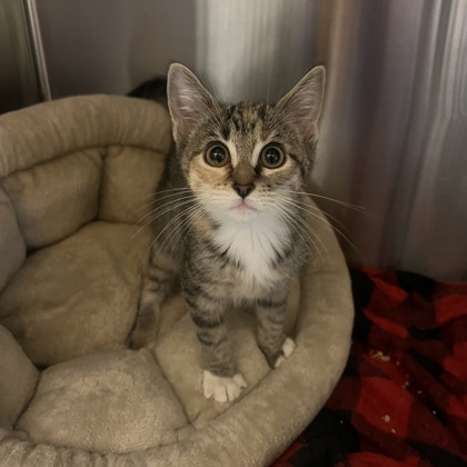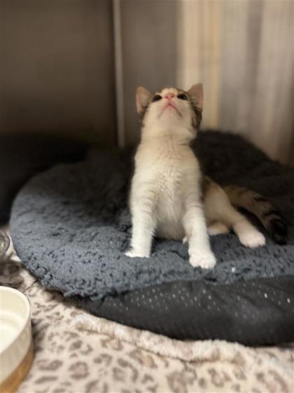 Hey! I'm Marco a handsome, 2-month old Male Brown and White, Domestic Short Hair Tabby. I am in search of my purrrrfect pal! Could you be the One? I love to play hide and seek, chase balls and jump over tall buildings, boxes! I will be at the Denton PetSmart beginning Monday 9/13/2025.* Appointment is Require *