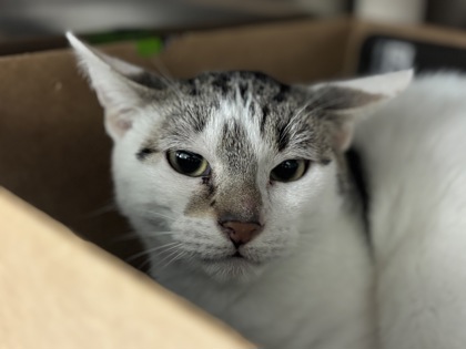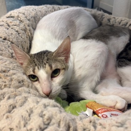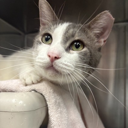 Hi! I'm Osito, a beautiful 3-year-old White and Grey Female Domestic Short Hair. I'm friendly, affectionate, and love playtime just as much as cuddle time. I will be at the City Place PetSmart beginning Friday 10/3/25.* Appointment is Required *
