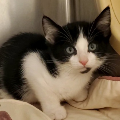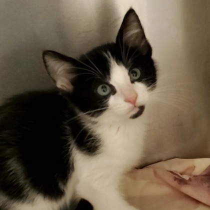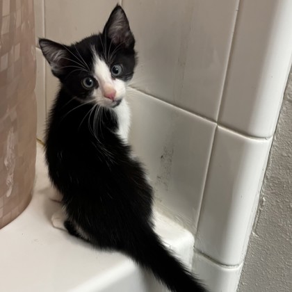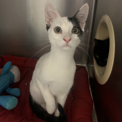 Hello, I'm Phantom and I am a 2-month old Male, Black and White, Domestic Short Hair. I am a quiet fellow that will need some time to adjust to my new castle. I like to play with my bell/ball and take naps, along side you while I appear in your dreams. Are you dreaming of taking me home!?I will be at the City Place PetSmart beginning Thursday 10/02/2025.* Appointment is Required *