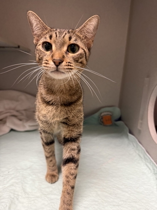 Hi! I'm Twiggy - a 7-month-old kitten with big curious eyes, and the loudest purr motor you've ever heard. I may be little, but trust me...I've got a huge heart. I'm still learning about this big world, and everything fascinates me - crinkly toys, soft blankets, even that weird dancing red dot everyone keeps talking about. I love to explore, climb things I probably shouldn't, and then curl up in your lap like I've been there my whole life.If you're ready for a tiny best friend who'll follow you like a shadow and fill your home with joy, I'm your guy.Come meet me from 12 PM to 6 PM, open every day.No application or appointment required - walk-ins welcome.SPCA of Texas, 2400 Lone Star Drive, Dallas, TX 75212