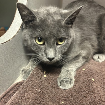 Hi, I'm Bessie, a 2-year-old grey kitty with soft fur and an even softer heart. I'm the kind of girl who likes to take my time-quietly observing the world around me and choosing my favorite cozy spots. I may not rush to the center of attention, but once I feel safe and settled, I'll be your gentle, loyal companion.I love calm spaces, kind voices, and the little things-like a warm patch of sunlight or a soft blanket to curl up on. If you're someone who understands the beauty of a quiet bond and a tender spirit, I just might be your perfect match.Come meet me from 12 PM to 6 PM, open every day.No application or appointment required - walk-ins welcome.SPCA of Texas, 2400 Lone Star Drive, Dallas, TX 75212