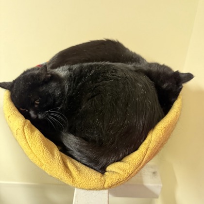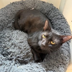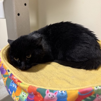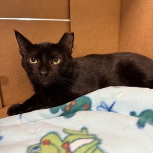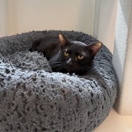 Hello! I'm Rosie, a quiet, pretty 3-year old Black, Female American Bobtail. My house mate, Sammy #59201410, and I are looking for a home together! One where we can nap, play and snack together. We really love one another and now we need a human to love also! Could that be you!?I will be at the Denton PetSmart beginning Tuesday 9/9/25.* Appointment is Required *
