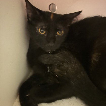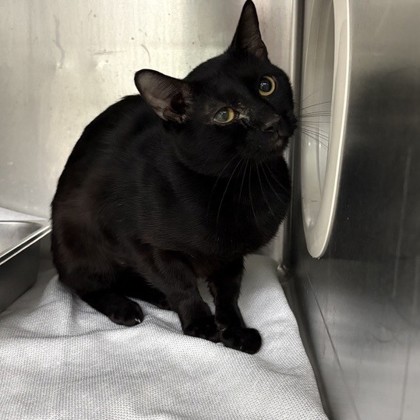 Meet Jade 1-Year-Old- Female- Black American ShorthairNickname: Kool Kat Yes, like the lovable Bratz character-Jade! And just like her, I've got a cool nickname too: Kool Kat, given to me by the sweet humans here at the shelter. But don't expect any fashion shows from me-my passion isn't for accessories or outfits... it's for sunbathing on the windowsill and living that chill life. I'm a sleek, mysterious beauty with a quiet charm. I might come off a little reserved at first-who wouldn't be in a new place?-but give me a little time and you'll see my inner lovebug shine through. I'm gentle, sweet, and full of potential to become your most loyal little shadow. If you've got a sunny window, a warm heart, and a little patience, I'd love to show you what this Kool Kat is really all about. Come see me at 2400 Lonestar Dr any day between 12noon-6pm!