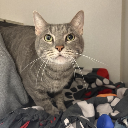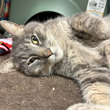 Hello, I'm Snuggles a pretty 1-year old Female, Blue Domestic Short Hair Tabby. My name fits me 'cause I like to snuggle up and get warm with my human! I also have a playful curious side. I told Santa, that I had been a very good girl this year and my wish is to find a Family of my own!I will be at the City Place PetSmart beginning Monday 12/08/2025.* Appointment is Needed *