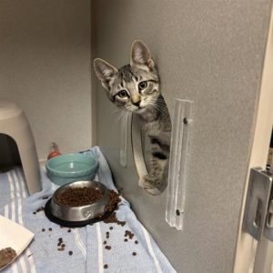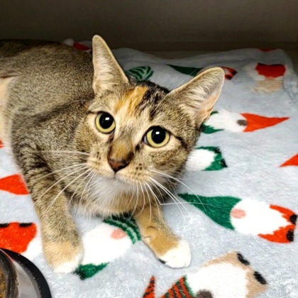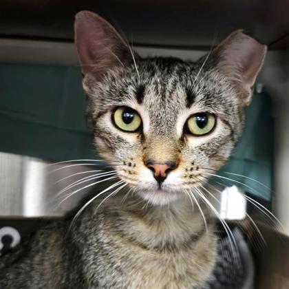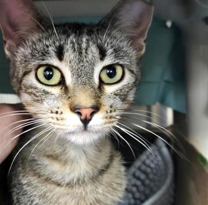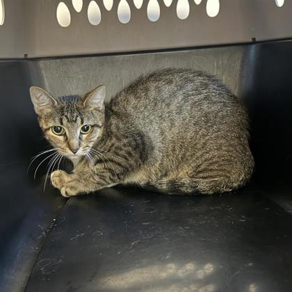 Hello there, I'm Hazel, a kitten with an independent streak. I relish exploring every nook and cranny of my surroundings. I'm a curious soul, always eager to learn new things. I may be young, but I'm full of life and spirit. I have a knack for finding the most comfortable spots to relax, and I'm quite adept at amusing myself with a simple ball of yarn. Why should you adopt me? Well, I believe every home needs a touch of independence, a dash of curiosity, and a whole lot of adventure. And I'm ready to provide all three.Come meet me at 2400 Lonestar Dr. any day between 12noon-6pm!