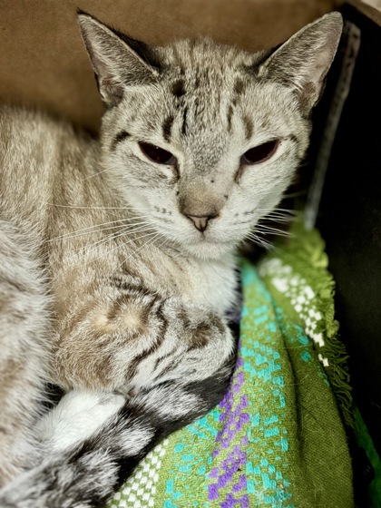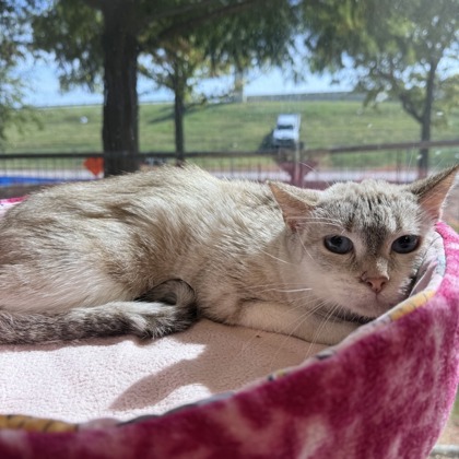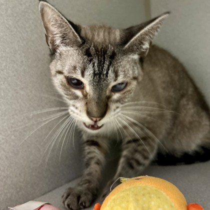 Hello, I'm Silver There's something quiet and lovely about me - like a soft breeze or the shimmer of moonlight. I'm a gentle soul who loves peaceful moments, cozy places to nap, and the comfort of a kind hand.I may not be the loudest in the room, but I have a quiet way of making people feel calm and cared for. I enjoy soft pets, slow mornings, and the kind of companionship where words aren't always needed - just love.If you're looking for a calm, affectionate companion to bring warmth and grace into your home, I'd love to be the one.Come meet me from 12 PM to 5 PM, open every day.No application or appointment required - walk-ins welcome.SPCA of Texas, 2400 Lone Star Drive, Dallas, TX 75212