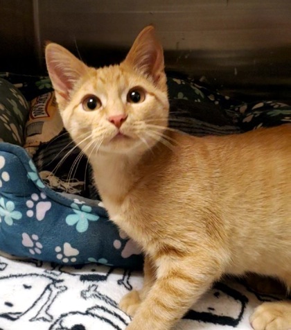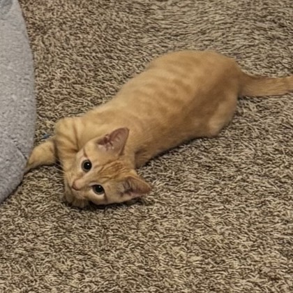 Hello! I'm Velour, a handsome, sweet 3-month old Male, Orange Domestic Short Hair Tabby. I am looing for my favorite human to love and care for me, along with snuggle on the warm sofa with! I enjoy chasing and pouncing on my toys, and then after playing my comforting purr will soothe you. How about it~!?I will be at the Lakewood PetSmart beginning Thursday 01/22/26.* Appointment is Needed *