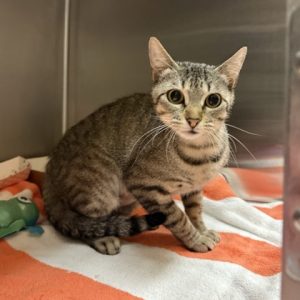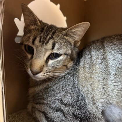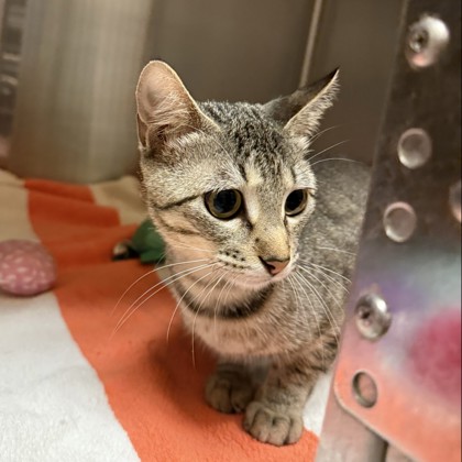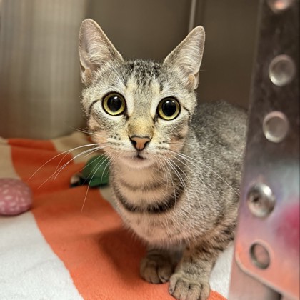 Meet Sparkles ,This lovely tabby girl is a quiet, reserved sweetheart who prefers a calm and cozy environment. Sparkles may be a little shy at first, but with patience and kindness, she'll slowly come out of her shell and show her gentle, loving side. She enjoys soft places to nap, peaceful moments, and watching the world from a safe spot nearby. Sparkles would do best in a relaxed home where she can feel secure and truly blossom at her own pace.If you're looking for a calm, low-key companion to share your space and your heart, Sparkles is ready to find a home to call her own.Come meet me from 12 PM to 6 PM, open every day. No application or appointment required - walk-ins welcome. SPCA of Texas, 2400 Lone Star Drive, Dallas, TX 75212