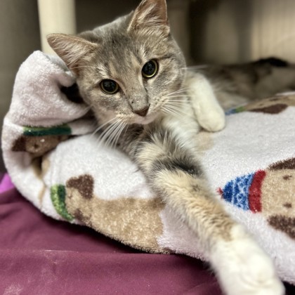 Hi, I'm Amelia! I'm 7 months old and love exploring my world with wide-eyed curiosity. I'm a gentle, playful little girl who enjoys cuddles, sunny spots, and cozy naps. Life is full of purrs, soft snuggles, and little adventures, and I'm here to make every moment delightful!Come meet me from 12 PM to 6 PM, open every day.No application or appointment required - walk-ins welcome.SPCA of Texas, 2400 Lone Star Drive, Dallas, TX 75212