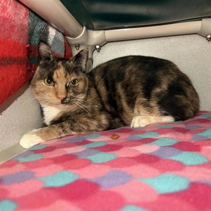 Hi! I'm Bell a pretty 3-year old, Female Brown with Orange, Domestic Short Hair Torbie. I also have an Orange Spot on the back top of my head and some small ear tuffs. My sister/house mate, Lynx #59195793, and I are looking for a home together where we can be loved by our human, take long lazy naps, and enjoy watching the birds and nature outside. We are pair bonded, so we need to go home together!We will be at the City Place PetSmart beginning Thursday 8/28/25.* Appointment is Required *