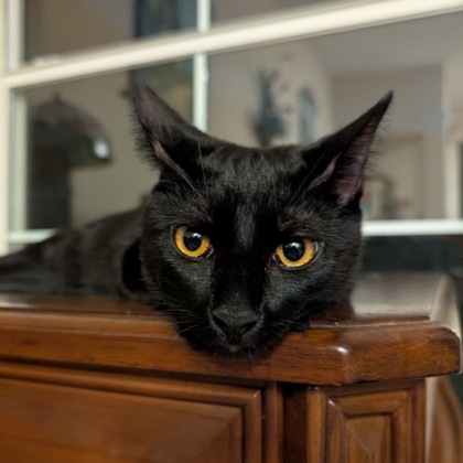 Hey. I'm Panther Sleek, confident, and effortlessly cool - I'm the kind of cat who knows exactly who he is. With my glossy coat and golden eyes, I turn heads without even trying. But trust me, I've got the personality to match the looks.I'm curious, clever, and always in the know. Whether I'm perched by the window watching the world go by or weaving between your legs to say hello, I like being where the action is. I enjoy good conversation (especially if you talk to me like I'm a person) and a comfy spot nearby to relax in style.If you're looking for a companion who's equal parts charm and character, I'm ready to claim my place in your home - and your heart.Come meet me from 12 PM to 6 PM, open every day.No application or appointment required - walk-ins welcome.SPCA of Texas, 2400 Lone Star Drive, Dallas, TX 75212