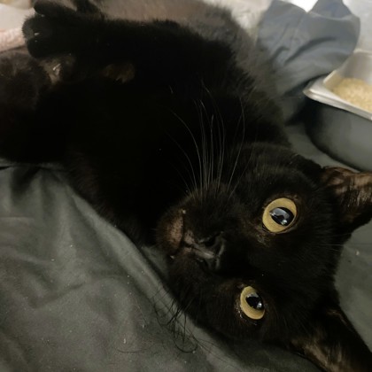 Hi, I'm Shadow - a beautiful black kitty with a heart as sweet as my shiny coat! I absolutely love rolling over for scratches and soaking up all the pets you'll give me. Hi there... I'm Shadow. I know my fur is dark as midnight, but I promise my heart is all sunshine. I'm a gentle, friendly boy who loves calm voices, soft blankets, and anyone willing to give me a little chin scratch. I may look mysterious, but really, I'm just a sweetheart who wants a cozy place-and a person-to call my own. My favorite things? Curling up next to you while you read or watch TV, greeting you with a soft purr when you walk into the room, and following you around like the loyal little shadow I am. I'm curious, but never pushy; playful, but never wild. Mostly, I just want to be part of your world. If you're looking for a loving companion who will always be nearby, quietly devoted and endlessly affectionate, I'd love to be your new best friend.Come meet me from 12 PM to 6 PM, open every day. No application or appointment required - walk-ins welcome. SPCA of Texas, 2400 Lone Star Drive, Dallas, TX 75212