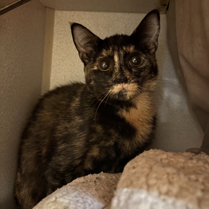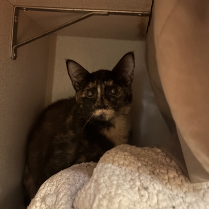 Hello, I'm Tinsel! I'm a 3-month-old Female Brown and Orange Domestic Short hair Torbie with soft fur and the sweetest little heart. I love exploring new spaces, climbing anything I'm allowed to climb, and snuggling close once I get comfortable. I'm still learning about the world, but I'm excited to find a family who will love me as I grow.I will be at the Lakewood PetSmart beginning Monday 12/08/25.*Appointment Required*