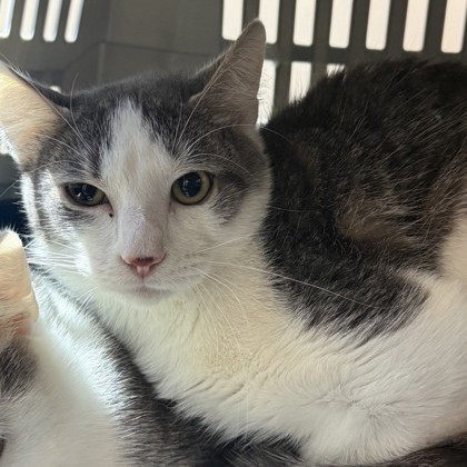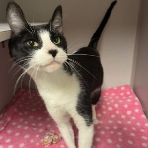 Hi I'm Alessandra, a pretty 2-year old Female, Black and White Domestic Short Hair Tuxedo. I am sweet with a calm demeaner and have been a great Mom to my kittens. Now it is time for me to find a home and let my kittens also find homes. I will make a wonderful companion.Come visit me at the Greenville Ave PetSmart beginning Thursday 03/19/26.* Appointment is Needed *