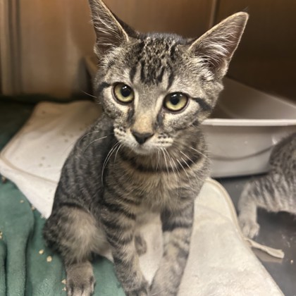 Hi, I'm Nina a sweet 4-1/2-month-old Female Brown Domestic Short Hair Tabby. I love gentle cuddles and cozy spots, and I'm happiest when I'm close to someone who cares. Quiet, friendly, and full of charm, I'm ready to share lots of love with the right person.I will be at the City Place PetSmart beginning Saturday 11/22/25.* Appointment is Required *