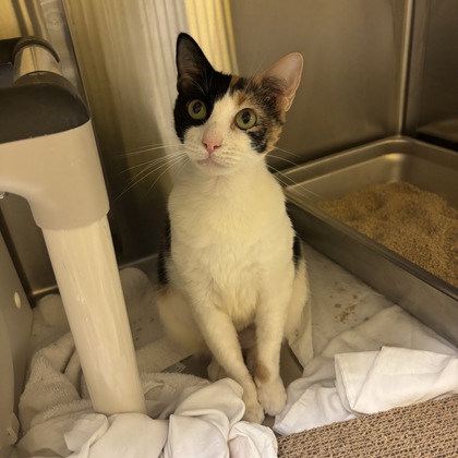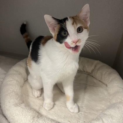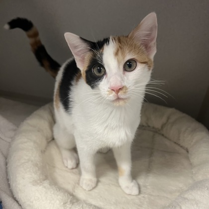 Hi! I'm Matilda, a beautiful 3-1/2 month old White, Orange and Black, Domestic Short Hair Calico. I a free spirit, that likes to hunt my toys and then after a long period of play I like to snuggle. Can I be your constant companion!?I will be at the Greenville Ave PetSmart beginning Monday 10/13/25.* Appointment is Required *