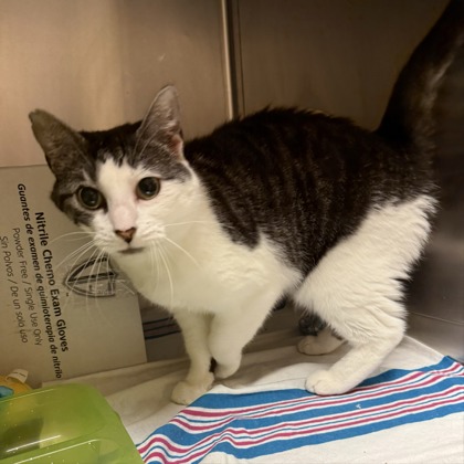 Hi I'm Alessandra, a pretty 2-year old Female, Black and White Domestic Short Hair Tuxedo. I am sweet with a calm demeaner and am looking for my purrrrfect human! I am out going and playful. I will make a wonderful companion.Come visit me at the Greenville Ave PetSmart beginning Thursday 03/19/26.* Appointment is Needed *