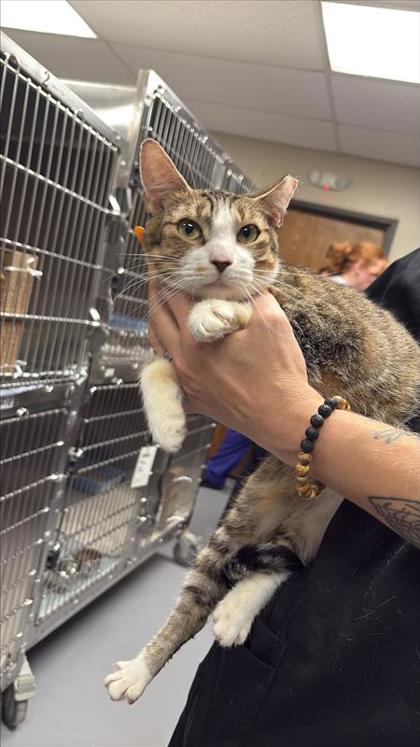 Hello, I'm Gloria and I am a sweet snuggly 1-year old, Brown and Orange with a little White, Domestic Short Hair Tick Torbie. I enjoy making biscuits and napping in the afternoons. I am low maintenance, gentle and everyone's best friend!I will be at the Lakewood PetSmart beginning Tuesday 9/23/25.* Appointment is Required *