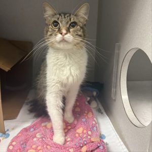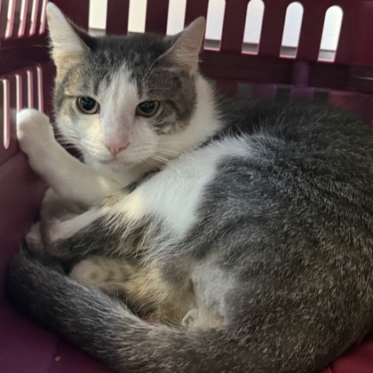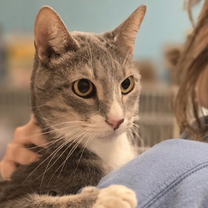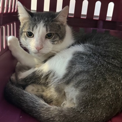 Hi! I'm Ari a beautiful 6-year old Female, Blue with White, Domestic Short Hair Tabby. I am timid at first, but with my new Family's love and patience, I will blossom into the snuggly kitty I am meant to be. I am sweet and will be a wonderful companion!Visit me at the Greenville Ave PetSmart beginning Wednesday 3/25/26.* Appointment is Needed *