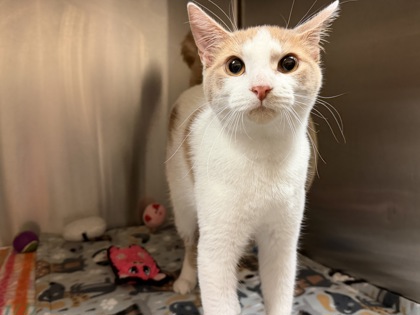 Hi there! I'm Calee, an adorable 8-month-old, Female Brown Orange with White Torbie. I am curious with a gentle spirit and a playful heart. I love exploring, chasing toys, and finding the coziest spots for naps. Even though I'm not a baby kitten anymore, can I be YOUR baby!?I will be at the Denton PetSmart beginning Monday 11/10/25.* Appointment is Needed *