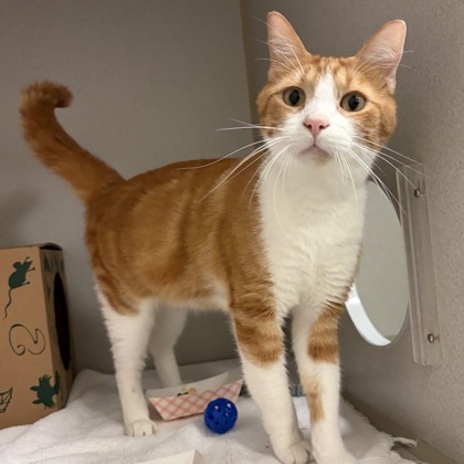 Meet Ernie ,This cute orange and white boy is full of playful energy and charm! Ernie loves to explore, chase toys, and take in the world at his own pace, turning everyday moments into little adventures. He's a happy, easygoing guy who's looking for a forever home where he can play, relax, and truly be himself. If you're searching for a fun-loving companion with a sweet spirit, Ernie might just be your perfect match.Come meet me from 12 PM to 6 PM, open every day. No application or appointment required - walk-ins welcome. SPCA of Texas, 2400 Lone Star Drive, Dallas, TX 75212