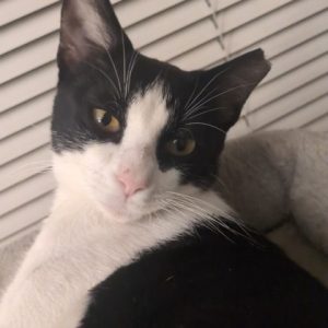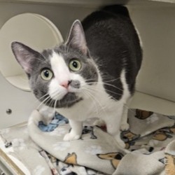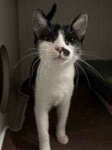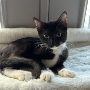 Hi! I'm Megan, a 6-month old Female, Black and White, Domestic Short Hair. I am a bright-eyed teenage kitten with a big personality and an even bigger heart! I enjoy the company of my human friends and seek it out. I also might be called (some might say nosy, but I prefer "investigative reporter"!). If there's a new sound, smell, or toy around, you can bet I'll be the first one to check it out!I will be at the Denton PetSmart beginning Tuesday 11/11/25.* Appointment is Needed *