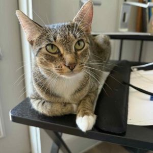 Hi! I'm Mittens a pretty 1-year old Female, Brown and White, Domestic Short Hair Tabby. I am calm, loving and gentle. I hope to find a home very soon so I can get settled in before the holidays hit!I will be at the Denton PetSmart beginning Tuesday 11/25/25.* Appointment is Needed *