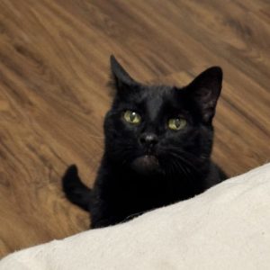 Hi, I'm Jingle a pretty 2½-month-old Female Black Domestic Shorthair with a curious spirit and a playful personality. I love exploring new spaces, practicing my tiny pounces, and keeping an eye on everything happening around me. I'm friendly, bright, and full of kitten energy-ready to bring joy to my future forever home.I will be waiting for YOU at the Greenville Ave. PetSmart beginning Tuesday 12/02/25.* Appointment is Needed *