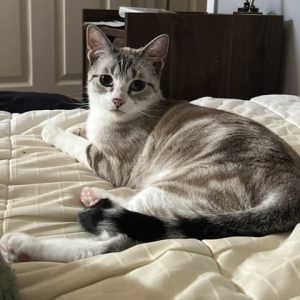 Hi, I'm Magnolia! I'm a 2-year-old cat with a gentle heart, curious eyes, and a calm, loving nature. Life is pretty great when there's a sunny spot to nap in, a cozy perch to watch the world from, and a human nearby to share it all with.I enjoy peaceful moments, soft blankets, and the occasional burst of playtime. I'm independent but affectionate, and I love settling into a warm home where I can relax and just be me.Right now, I'm staying in a foster home where I'm safe, comfy, and well-loved - but what I'm really waiting for is a forever home to call my own. If you think we could be a perfect match, just fill out an application to meet me. I'll be here, ready to win your heart.Her foster lists her likes as follows: heating pad, sitting in your lap while you work, playing with her string toy and the laser light, and her water fountain.