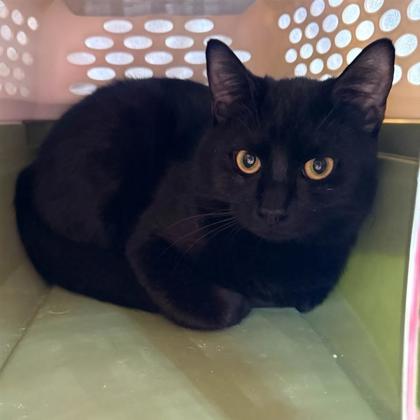 Hello, I'm Noir - a gentle 5-year-old black cat with a soft heart and an even softer purr. I may not be a kitten anymore, but that just means I've perfected the art of being a calm, comforting companion. I'm a quiet soul who loves peaceful spaces, warm naps, and the simple joy of being near someone kind. I'm the type of cat who will greet you with slow blinks, rub against your legs for attention, and curl up nearby to keep you company. I don't ask for much - just a safe, loving home and a person who appreciates a sweet, steady friend. My sleek black fur makes me look elegant, but really, I'm just a gentle girl who wants to feel safe and loved. If you enjoy calm evenings, soft purrs, and having a loyal little shadow by your side, I think we'd be a wonderful match.Come meet me from 12 PM to 6 PM, open every day.No application or appointment required - walk-ins welcome.SPCA of Texas, 2400 Lone Star Drive, Dallas, TX 75212