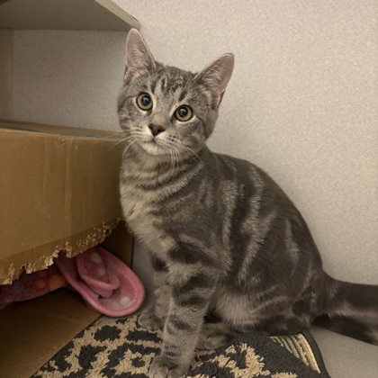 Hi, I'm Twinkle! I'm a curious, playful 3-month-old Female, Brown Domestic Short Hair Tabby kitten, who loves pouncing on toys, exploring anything that crinkles, and snuggling up when I'm sleepy. I may be tiny, but I have a big heart and an even bigger purr. I can't wait to meet someone who'll be my forever friend.I will be at the Lakewood PetSmart beginning Monday 12/08/25.*Appointment is Needed*